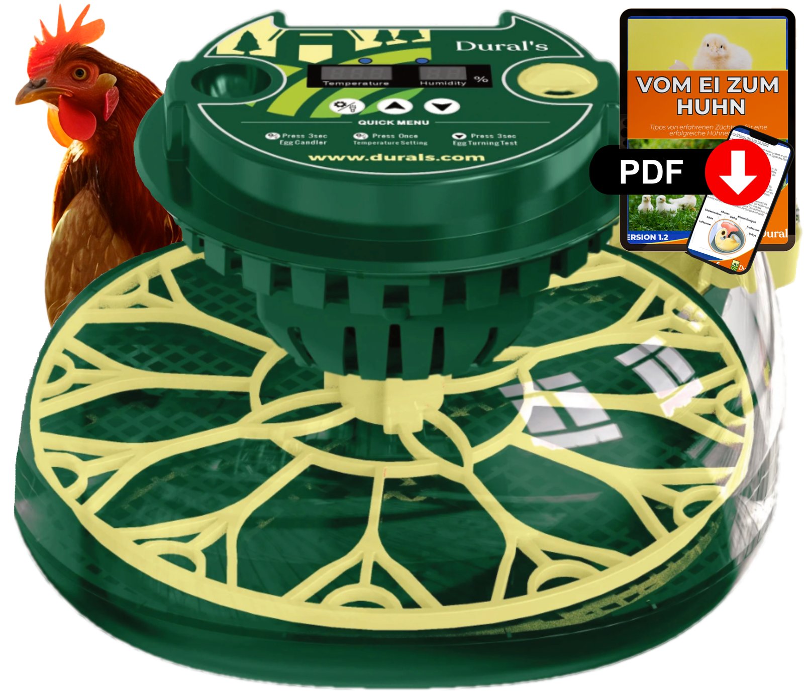 Der Dural’s DX3 wurde entwickelt, um Anfängern und Hobbyzüchtern das Brüten so einfach wie möglich zu machen. Mit seiner vollautomatischen Steuerung für Temperatur, Luftfeuchtigkeit und Eierwenden bietet er stabile Bedingungen für Hühnereier, Wachteleier oder Enteneier.